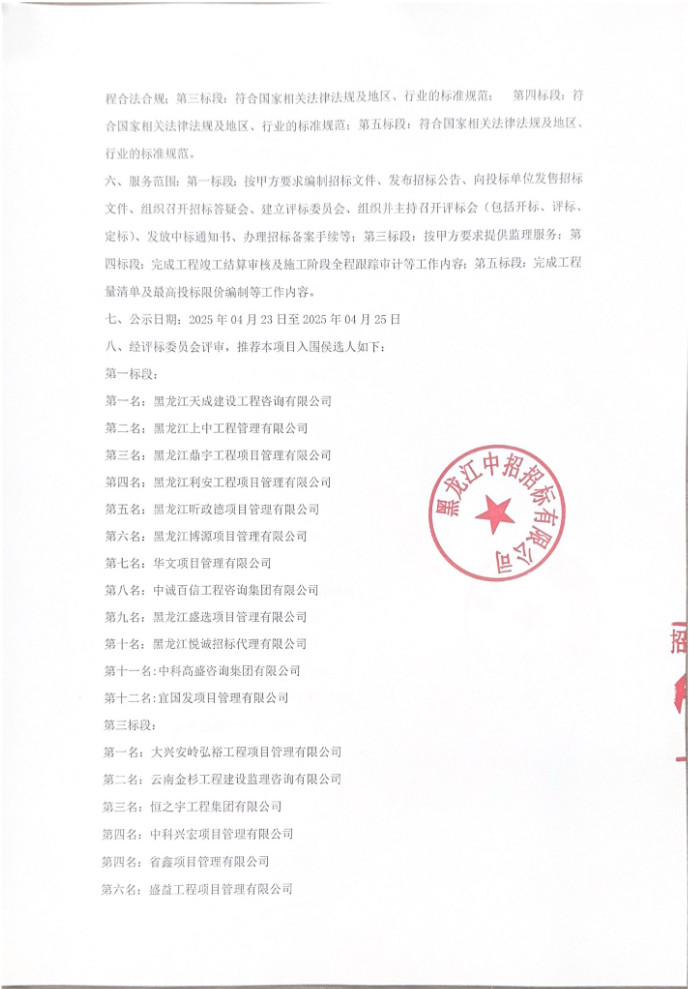 2025年4月23日,經(jīng)評(píng)標(biāo)委員會(huì)綜合評(píng)審,招標(biāo)人確認(rèn),正大鵬安建設(shè)項(xiàng)目管理有限公司中標(biāo)大興安嶺松嶺林業(yè)局服務(wù)機(jī)構(gòu)備選庫(kù)項(xiàng)目(第五標(biāo)段)。