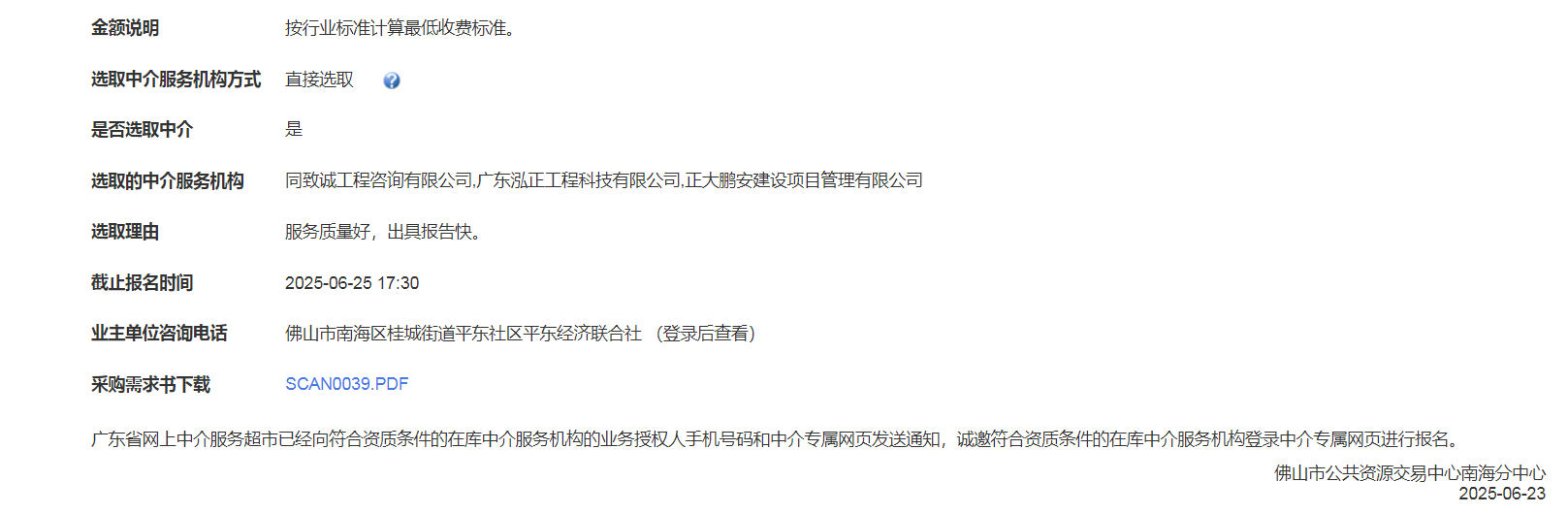 2025年6月25日,經(jīng)評(píng)標(biāo)委員會(huì)綜合評(píng)審,招標(biāo)人確認(rèn),正大鵬安建設(shè)項(xiàng)目管理有限公司中標(biāo)廣東省佛山市平東社區(qū)沿江路籃球場(chǎng)建設(shè)項(xiàng)目工程造價(jià)咨詢。