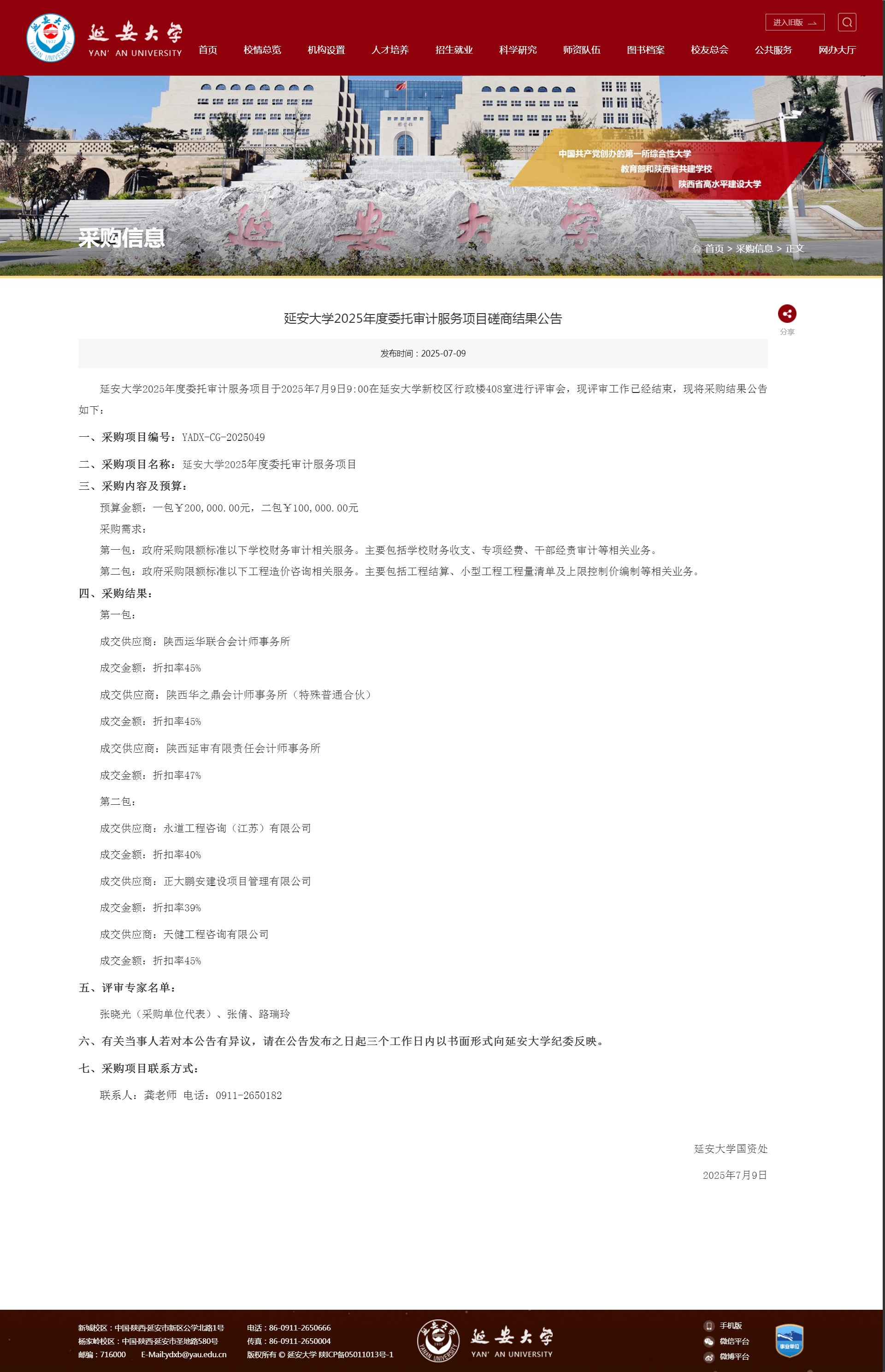 正大鵬安入圍延安大學(xué)2025年度委托審計(jì)服務(wù)項(xiàng)目