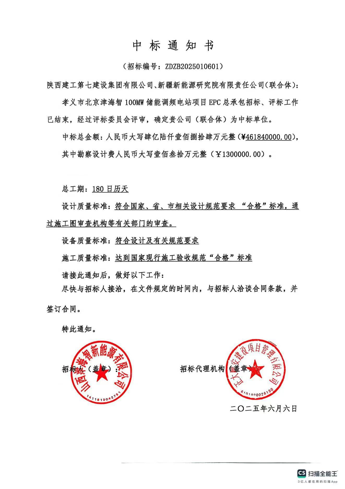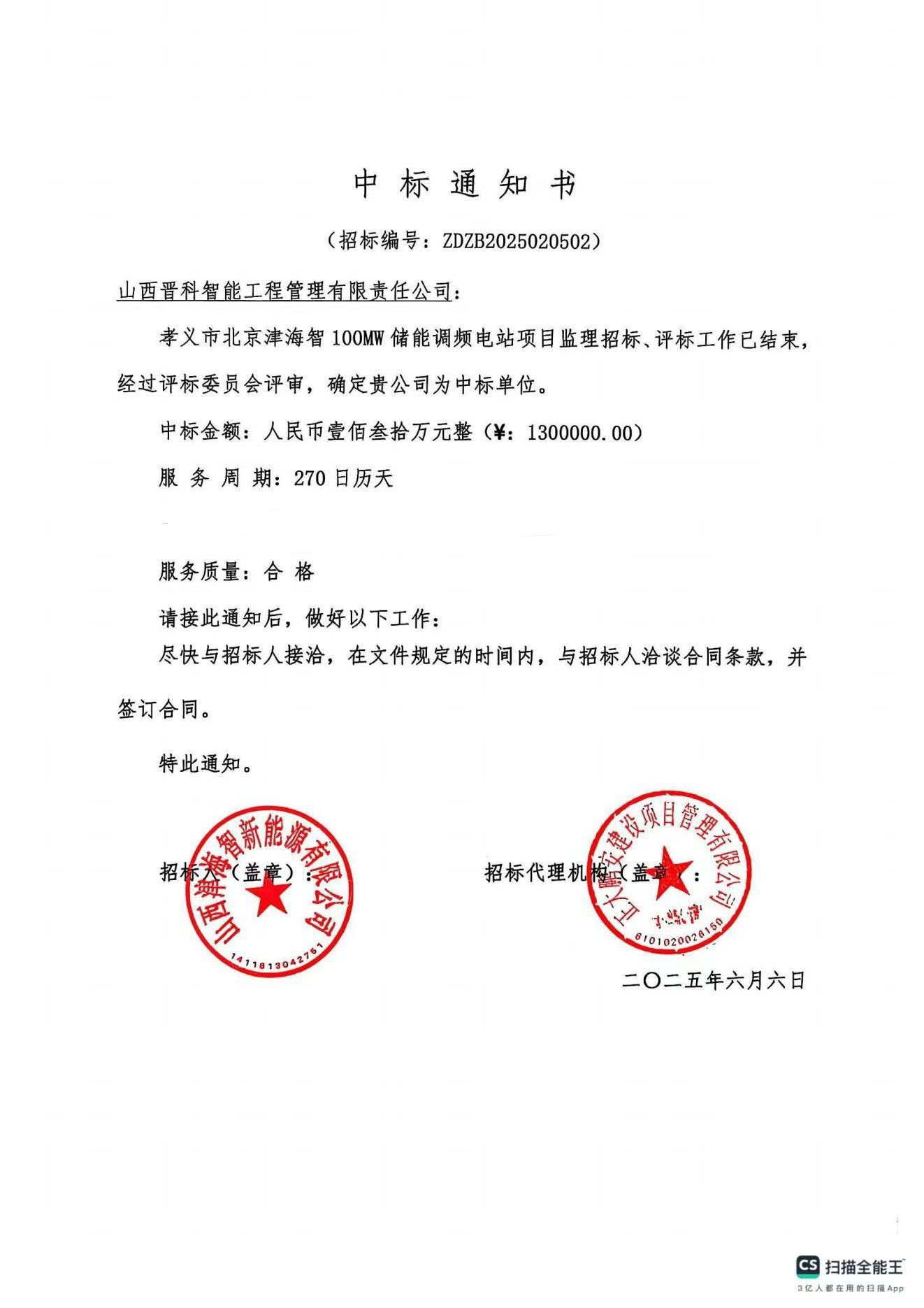 孝義市北京津海智100MW儲能調(diào)頻電站項目EPC總承包及監(jiān)理