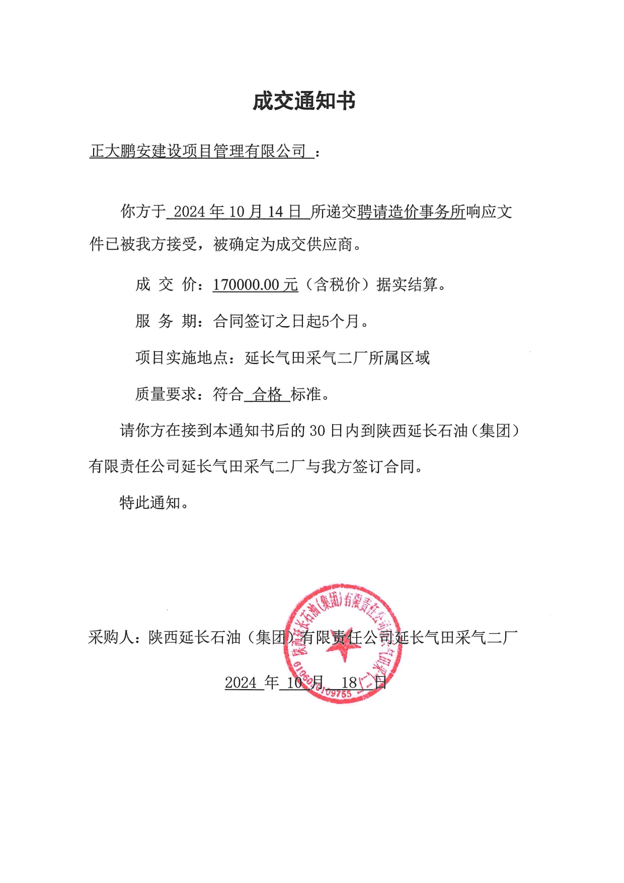 延長氣田采氣二廠聘請造價事務(wù)所項目造價咨詢